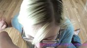 Сисястая жена в очках годно отсасывает хуй, извиняясь за запоздалый ужин