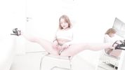Гимнастка отдаётся на шпагате в три ствола, чтобы насладиться вкусом спермы приятелей