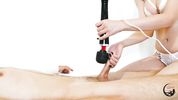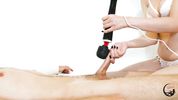 Раб спустя месяц освобождается от клетки на члене, получая дрочку и ласки вибратором по головке от госпожи
