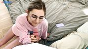 Вместо игры на телефоне очкастая тёлочка поигралась толстым членом приятеля