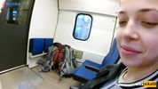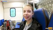 Задорная тёлочка отсосала парню прямо в вагоне электрички