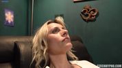 Описание:39-летняя блонда пришла к гипнотизёру в надежде, что он ей поможет бросить курить. Чувак загипнотизировал бабу и стал ей бухтеть, а сам, сука, полез ей в пиздищу, вначале сунув туда палец, а потом и кулак. Присунув тёлке хуя, врач запихнул ей в очко сигарету, а потом пошёл драть в пердак, то хером, то самотыком. В конце он заставил суку поссать на сигарету, подтвердив, что курить она больше не хочет и тогда уже разбудил пациентку. Пусть пиздует домой и моет анус от докторской спермы!
