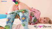 Стриженая малышка считает, что искусственный радужный хуй - лучшая альтернатива поднадоевшему скейту