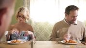 Описание:Увидев, как пасынок дрочит член большого размера, развратная мачеха проскользнула в комнату к сыну и стала сосать фаллос блондина. Парень за спиной у отца выебал его красивую жену с большой силиконовой грудью, которая громко кричала от страсти и оргазма, чпокаясь с крепким членом молодого человека.