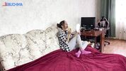 Брат выручил мартышку-сестру своим хуем, чтобы она тренировалась в минете