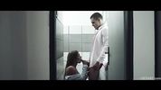 Худенькая сучка тайно трахается с фотографом в туалете, пока остальные ждут их на фотосессии
