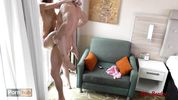 Девка прыгала зайчиком, пока не была выебана в рот и в пизду на кровати и напротив окна
