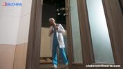 Описание:Три медсестрички заскочили в душевую помыться после смены в больнице. Все они очень молоденькие и озорные, так что кроме помывки они успевают ласкаться. А тут как раз нестарый доктор проходил мимо ванной и засмотрелся на голых девчуль, аж рот он открыл от шикарного зрелища! Но тёлки скоро спалили засранца и утащили его за собой в душевую, чтобы он хорошенько потешил милашек своим крепким докторским хуем.