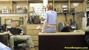 Рыженькая малышка с косичками насажена ртом и пиздой на здоровенный крючковатый писюн владельца ломбарда
