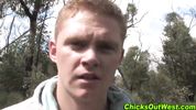 Парень жестко выебал подружку во время похода в лесу, пока второй снимал все на камеру