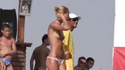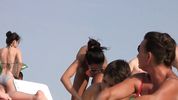 Бесстыжие пляжницы загорают топлесс и трясут своими упругими загорелыми дойками